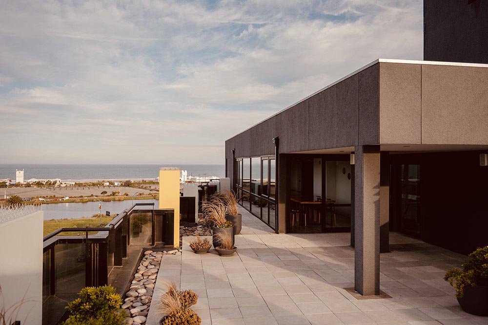 En el último nivel, con una privilegiada vista a la Reserva Natural de Mar del Plata y al mar, disponemos de un confortable espacio cubierto con áreas semicubiertas y descubiertas, para reuniones de hasta 40 personas, que lo convierten en uno de los mejores rooftop de la ciudad.